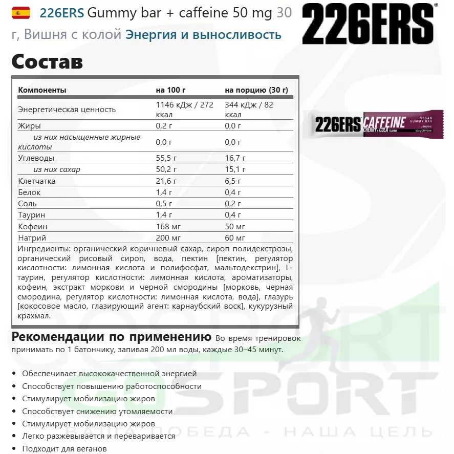 Состав 226ERS Gummy bar + caffeine 50 mg