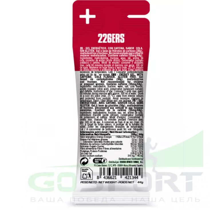 226ERS High Fructose Gel 250 mg + caffeine 55 mg 44 г, Кола — Заряд энергии и выносливость