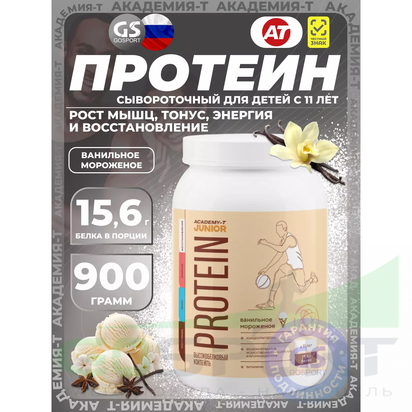 Академия-Т Junior Protein 900 г, Ванильное мороженое — Рост мышц, тонус, энергия и восстановление
