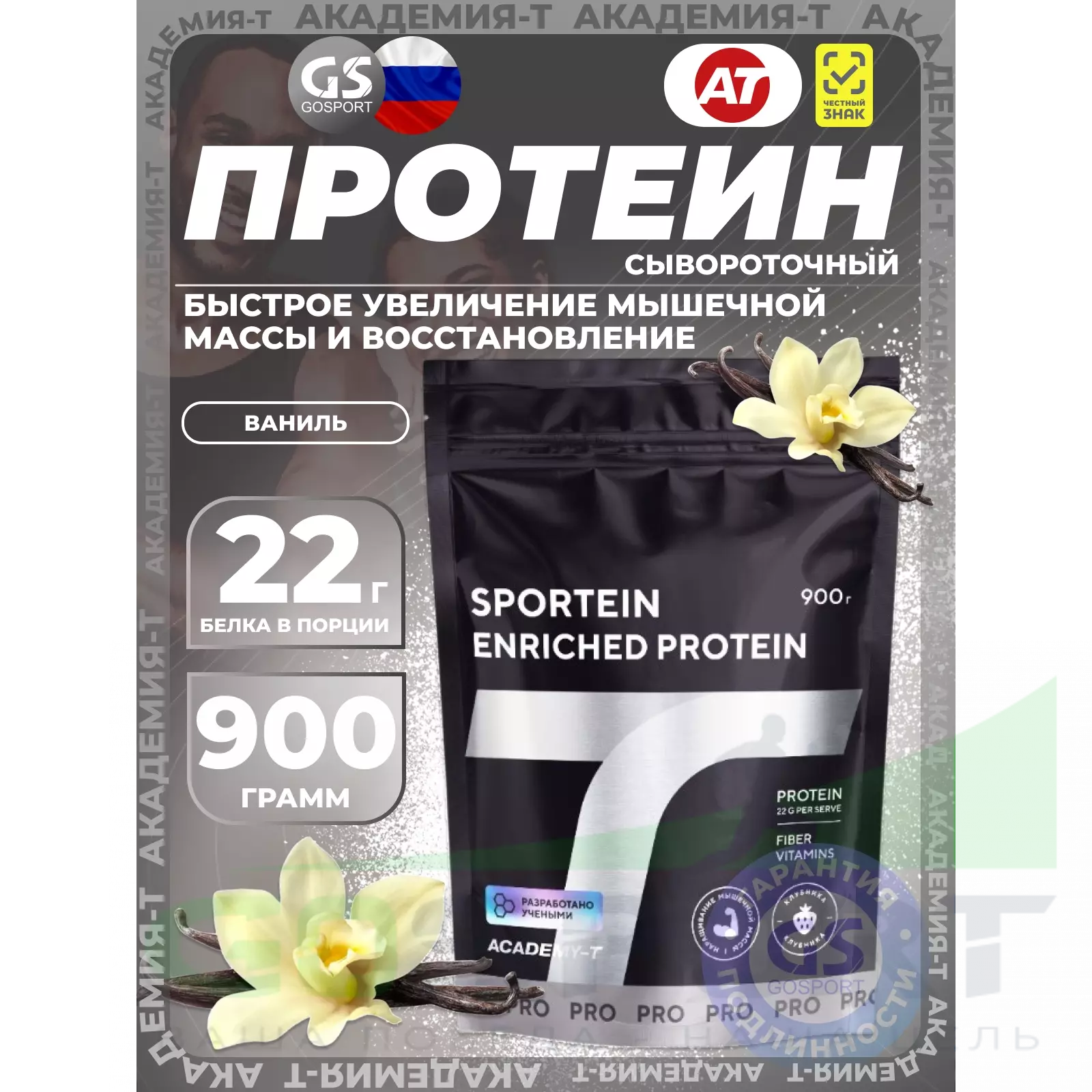 Академия-Т Sportein Enriched Protein 900 г, Ваниль — Быстрое увеличение мышечной массы и восстановление