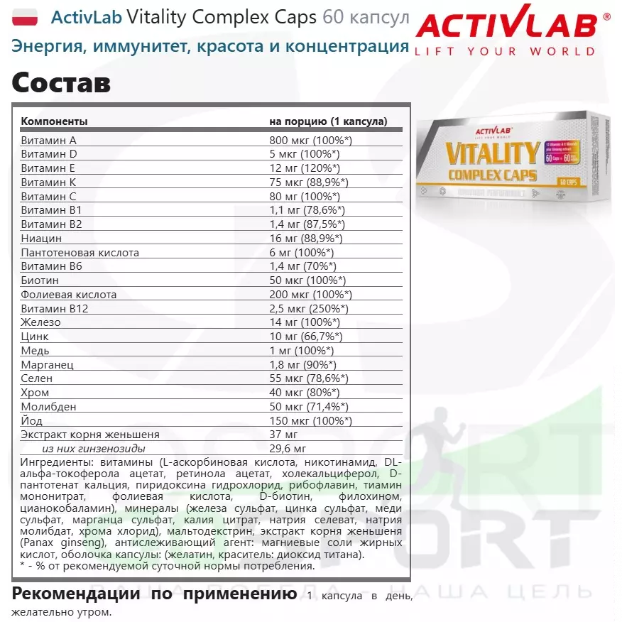 ActivLab Vitality Complex Caps 60 капсул — Энергия, иммунитет, красота и концентрация