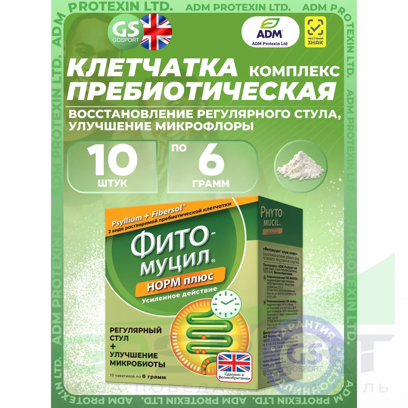 ADM Protexin Ltd. Фито-муцил 10 x 6 г — Восстановление регулярного стула, улучшение микрофлоры