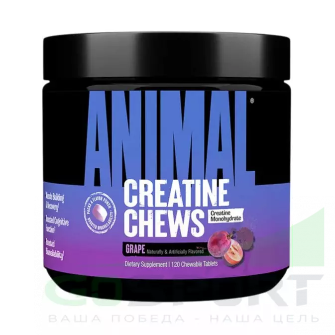 UNIVERSAL NUTRITION Animal Creatine Chews 120 таблеток, Виноград — для рост мышц, силы и восстановления