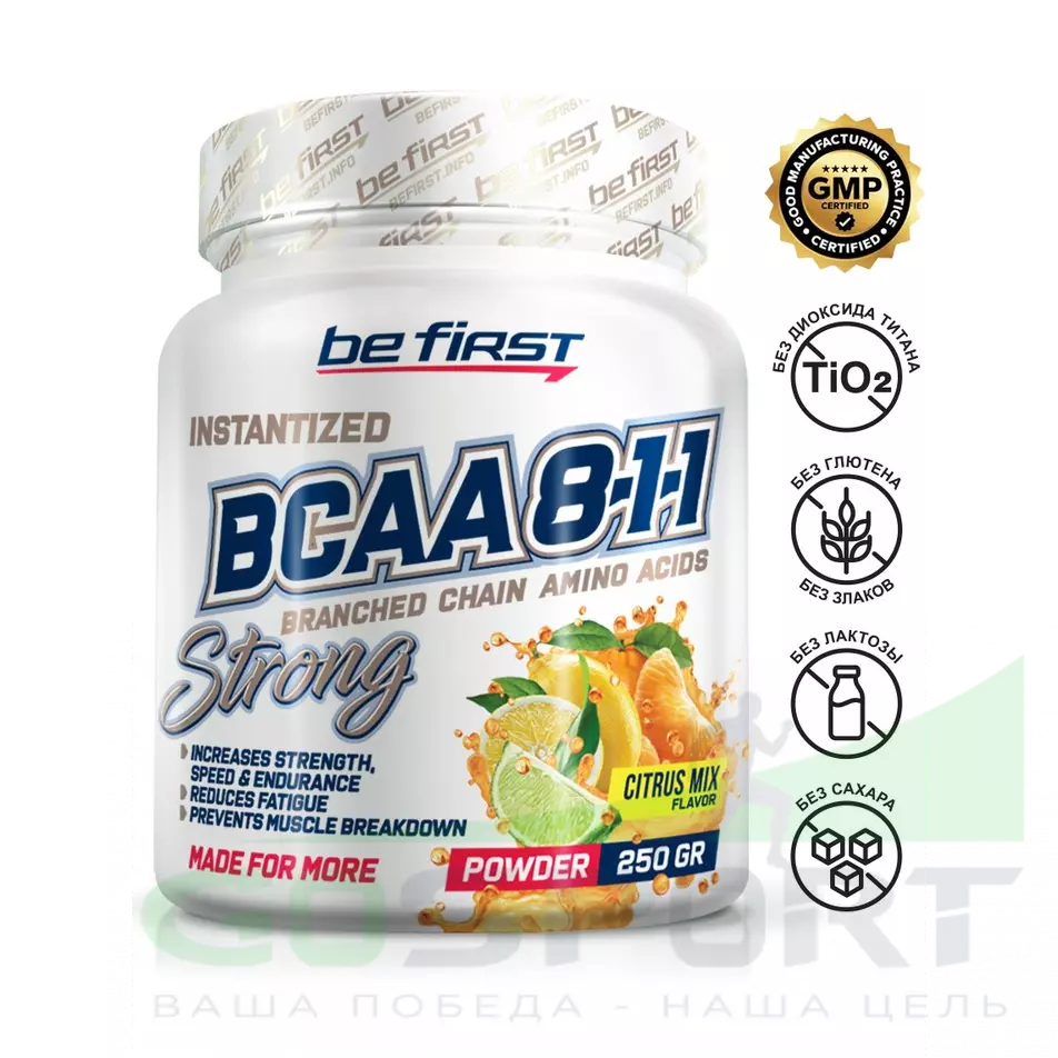 Количество лейцина здесь в 4 раза увеличено (по сравнению с традиционной формулой BCAA), чтобы добиться большей эффективности в стимуляции роста мышц и восстановлении после тренировки. Благодаря профессионально составленной рецептуре, использованию высококачественного сырья, а также применению усовершенствованной технологии “Instantized product”, аминокислоты Be First instantized BCAA 8:1:1 обладают превосходным вкусом, максимальной эффективностью и наилучшей степенью усвоения организмом.