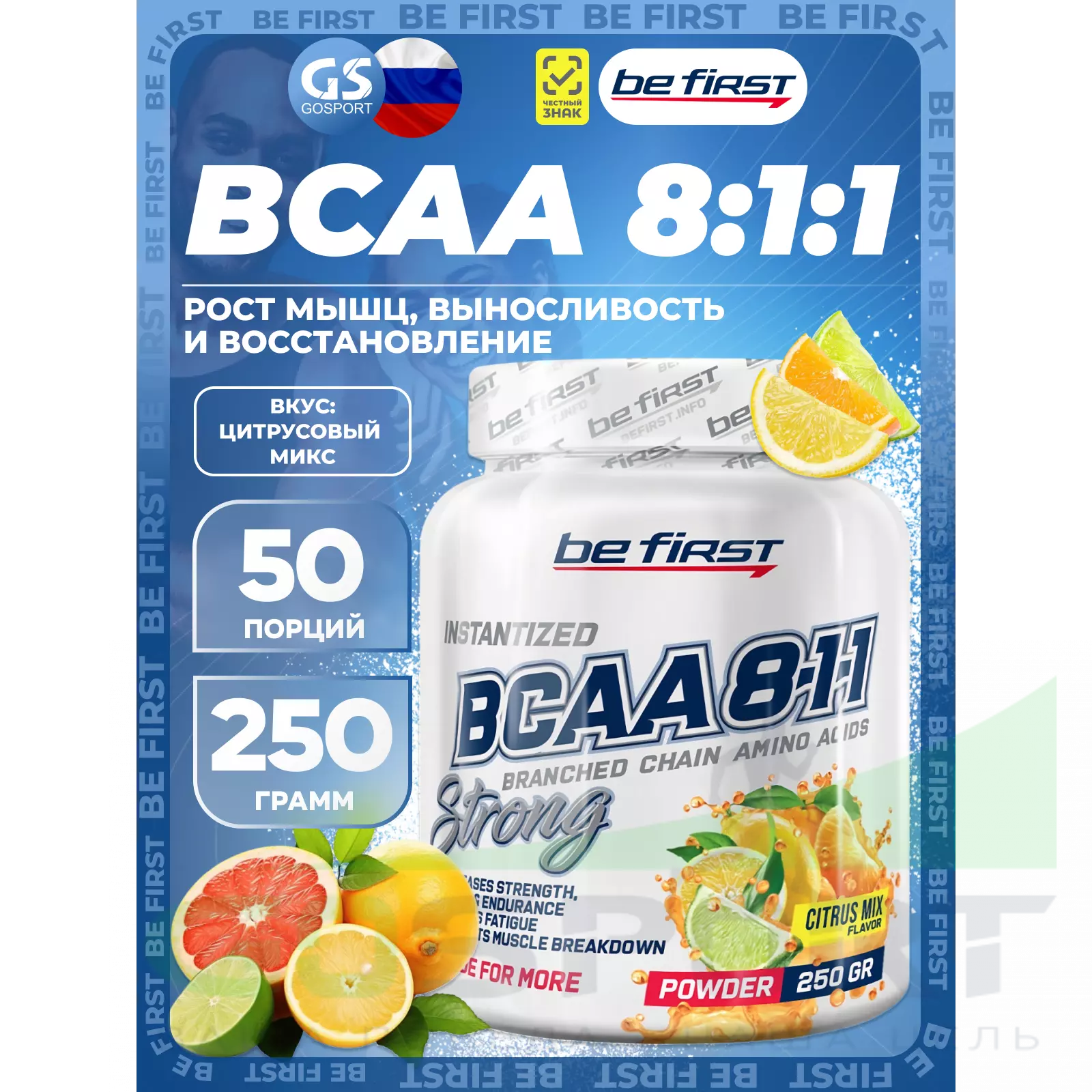 Be First instantized BCAA 8:1:1 Powder - это комплекс незаменимых аминокислот, в который входит 3 аминокислоты с разветвленной углеродной цепью, которые исключительно важны для синтеза белка и роста мышц: L-лейцин, L-изолейцин, L-валин. Соотношение количества этих аминокислот в составе добавки – 8:1:1.