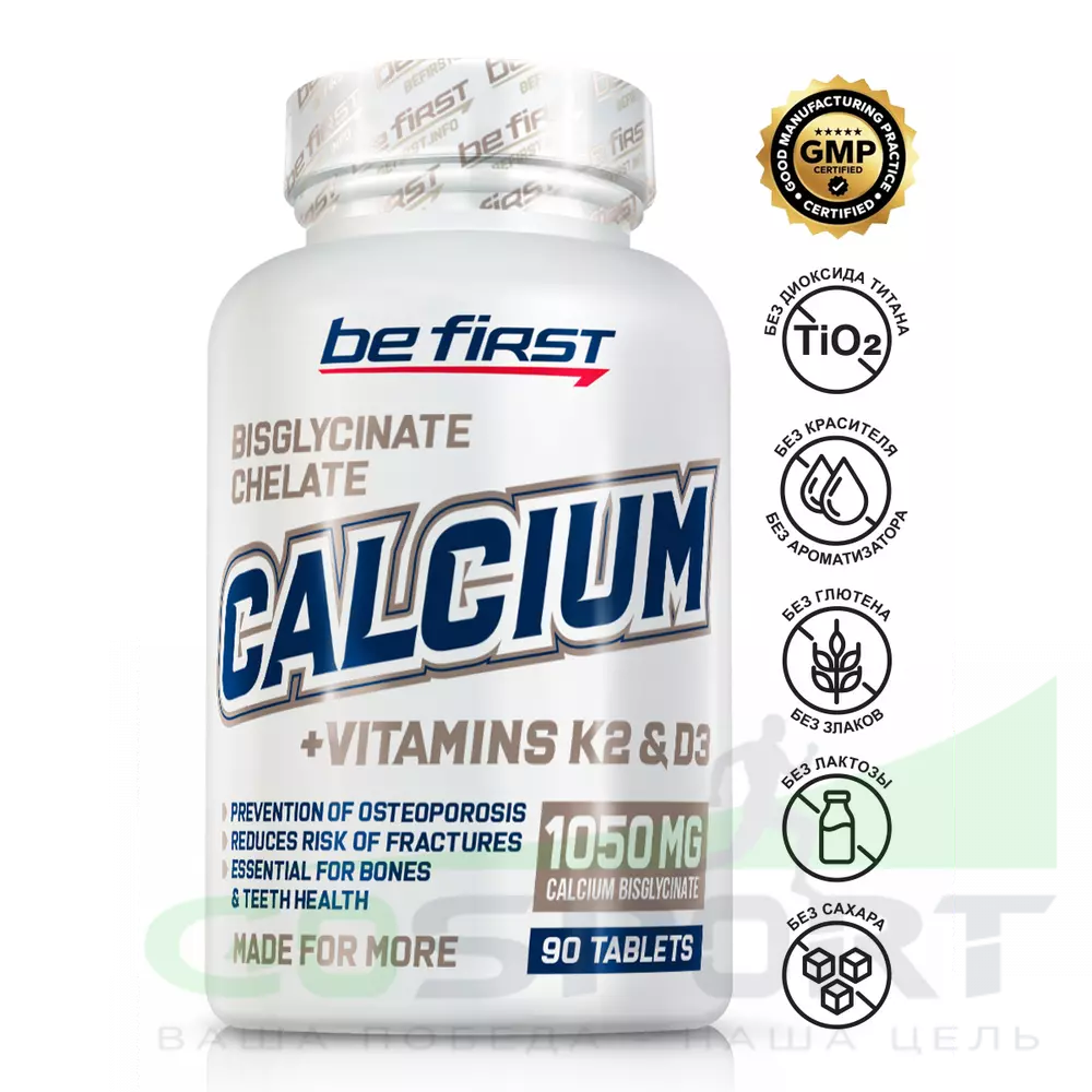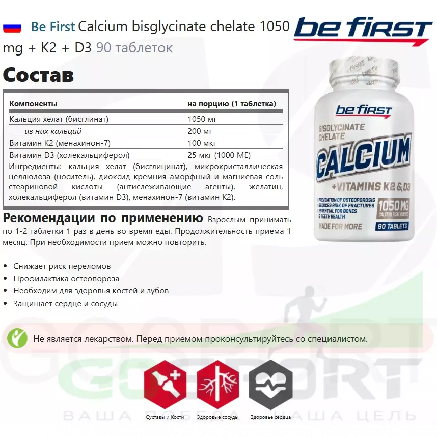 Описание Be First Calcium bisglycinate chelate 1050 mg + K2 + D3