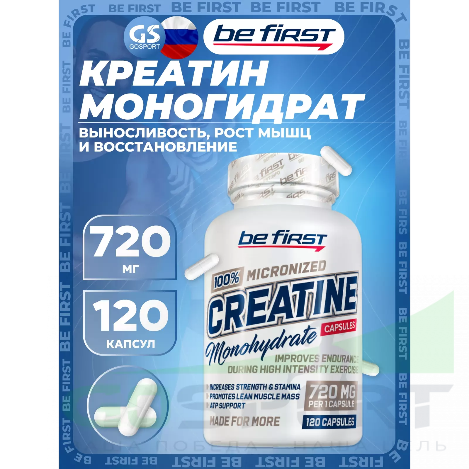 Be First Creatine Monohydrate Capsules (креатин моногидрат) 120 капсул — Выносливость, сила и восстановление