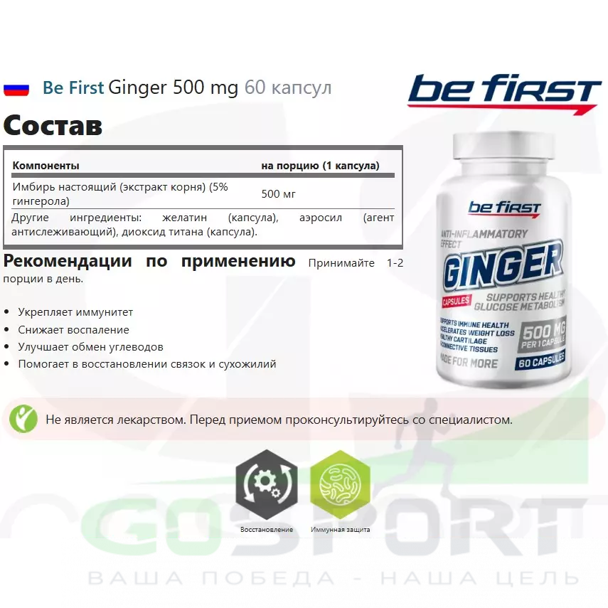 | Имбирь настоящий (экстракт корня) (5% гингерола) | 500 мг |