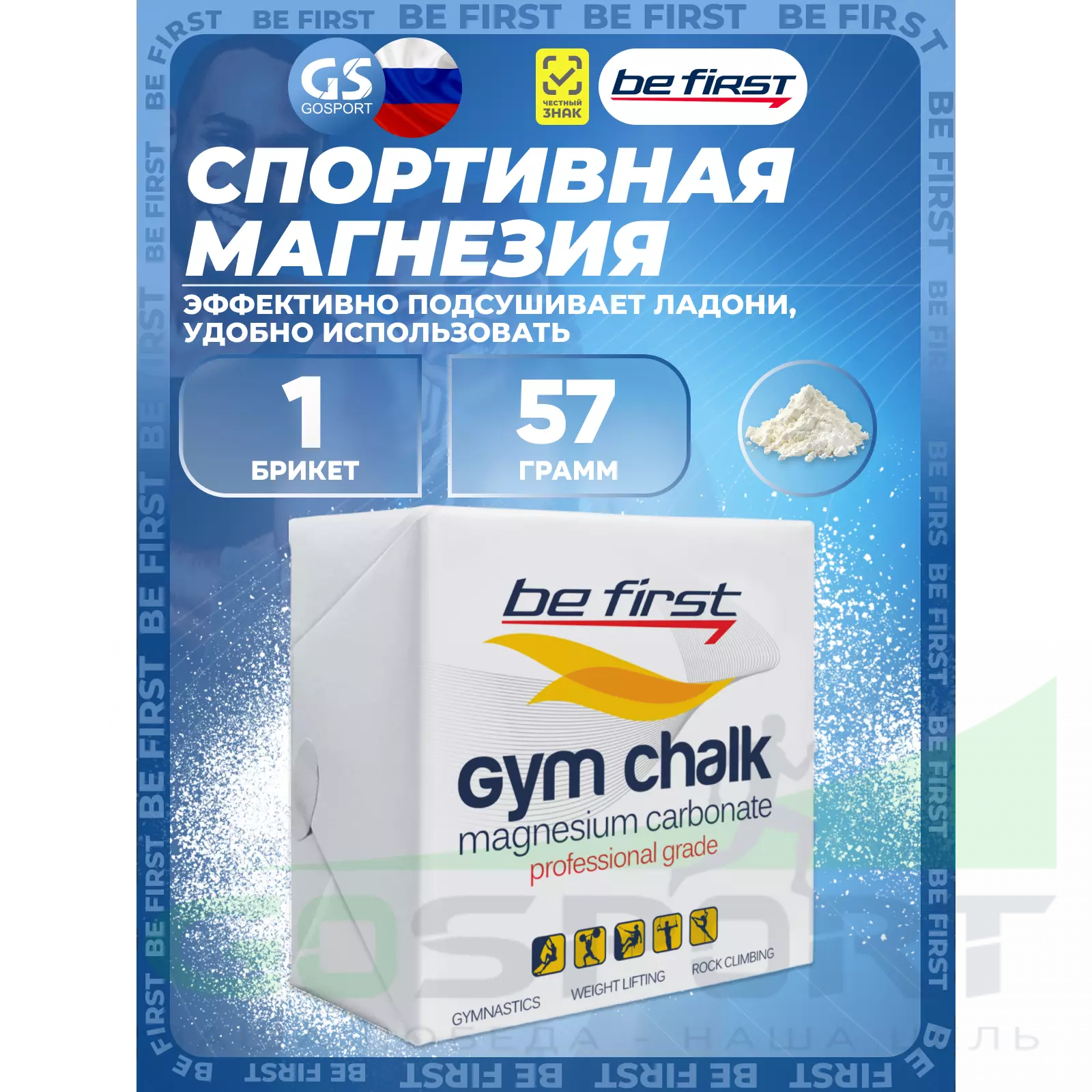 Спортивная магнезия Be First – это белый порошок, состоящий в основном из карбоната магния и предназначенный для подсушивания рук, а также улучшения их сцепления со снарядом при занятиях гимнастикой, тяжелой атлетикой, спортивным альпинизмом и другими видами спорта. Магнезия несколько снижает потоотделение в области ладоней и впитывает пот, увеличивая трение, за счет чего намного снижается вероятность проскальзывания ладоней на грифе или перекладине. Таким образом уменьшается вероятность получить травму, а также исключается необходимость тратить лишние усилия и внимание на удержание снаряда в руках – и, следовательно, повышается эффективность тренировок.