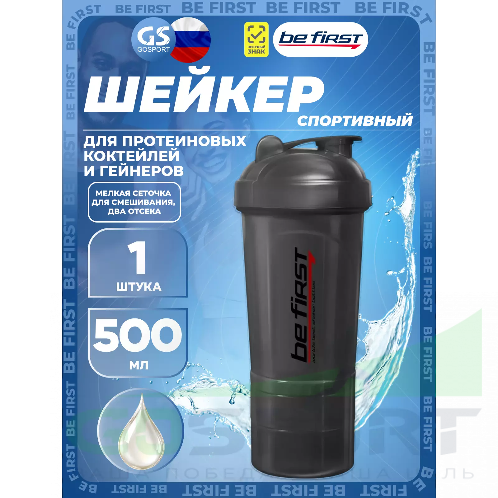 Спортивный шейкер Be First 500 мл 3-в-1 подойдет от аминокислотных до протеиновых коктейлей и гейнеров, которые помогут Вам подготовиться к тренировке, пополнив запасы аминокислот, а также быстрее восстановить силы после нагрузки. Сетка с небольшими узкими отверстиями способствует лучшему смешиванию однородного коктейля без комочков. Крышка на резьбе, плотно закрывающийся питьевой носик, отсутствующие внутри выступы – все продумано для более удобного использования шейкера.