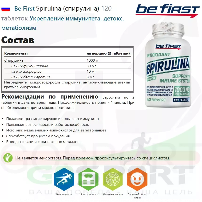 Описание Be First Spirulina