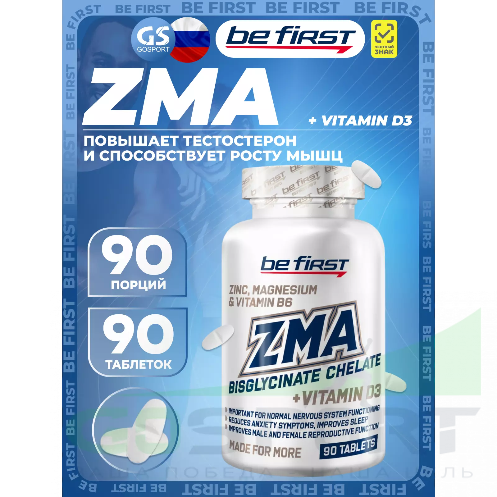 Описание Be First ZMA Chelate + vitamin D3 (ЗМА бисглицинат хелат + Д3)