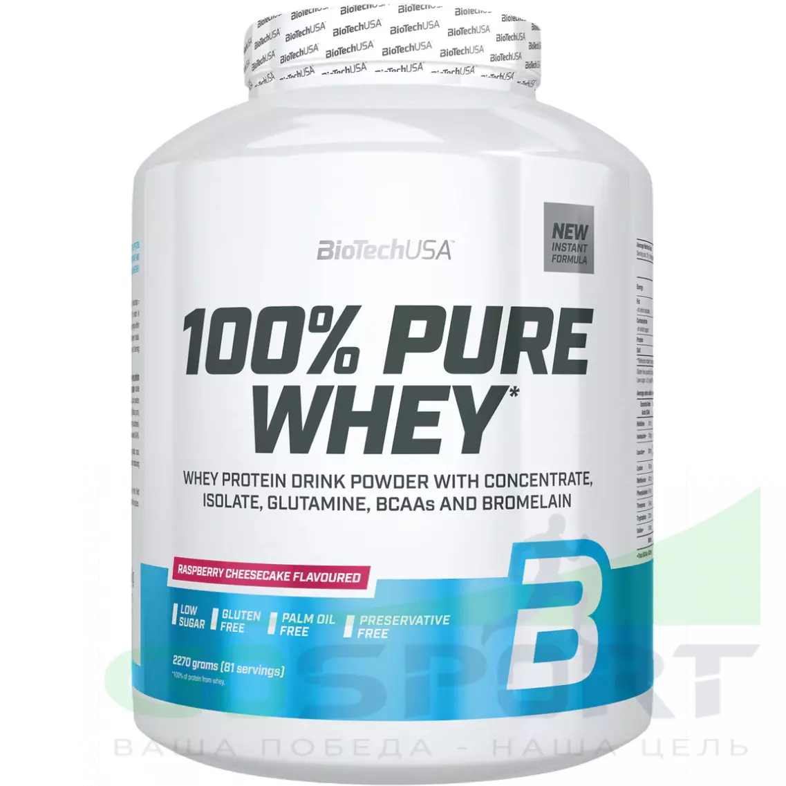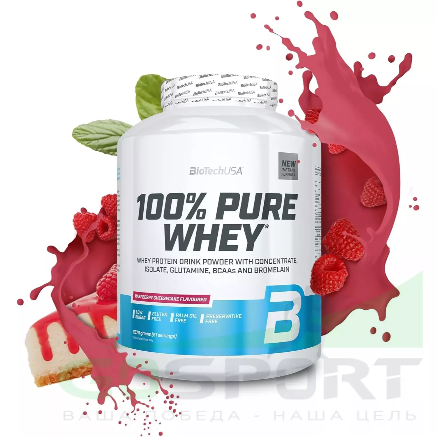 BioTechUSA 100% Pure Whey 2270 г, Малиновый чизкейк — Рост мышц, энергия, быстрое восстановление