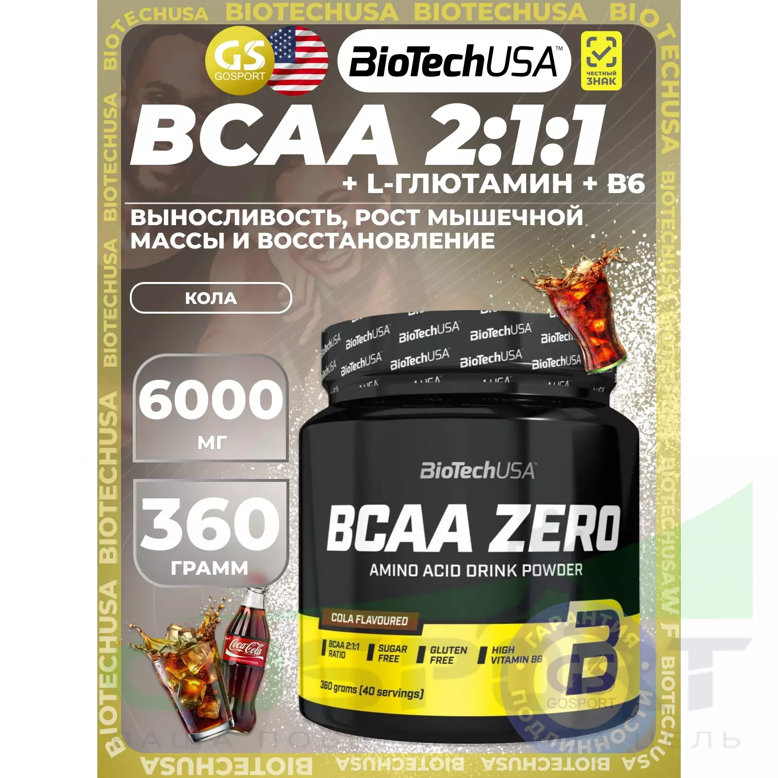 BioTechUSA BCAA Zero 2:1:1 360 г, Кола — Выносливость, рост мышечной массы и восстановление