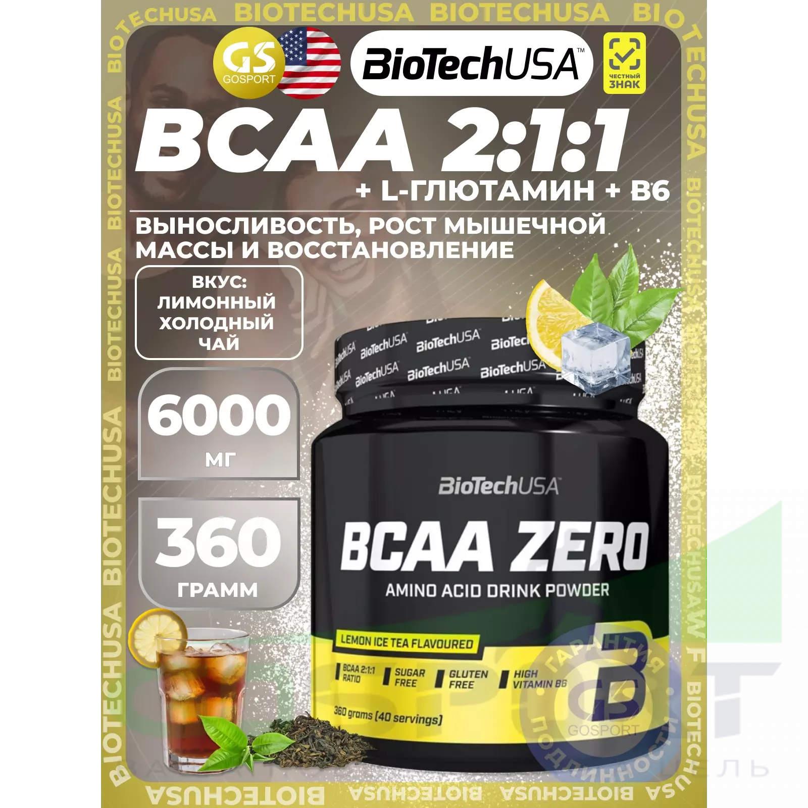 BioTechUSA BCAA Zero 2:1:1 360 г, Лимонный холодный чай — Выносливость, рост мышечной массы и восстановление