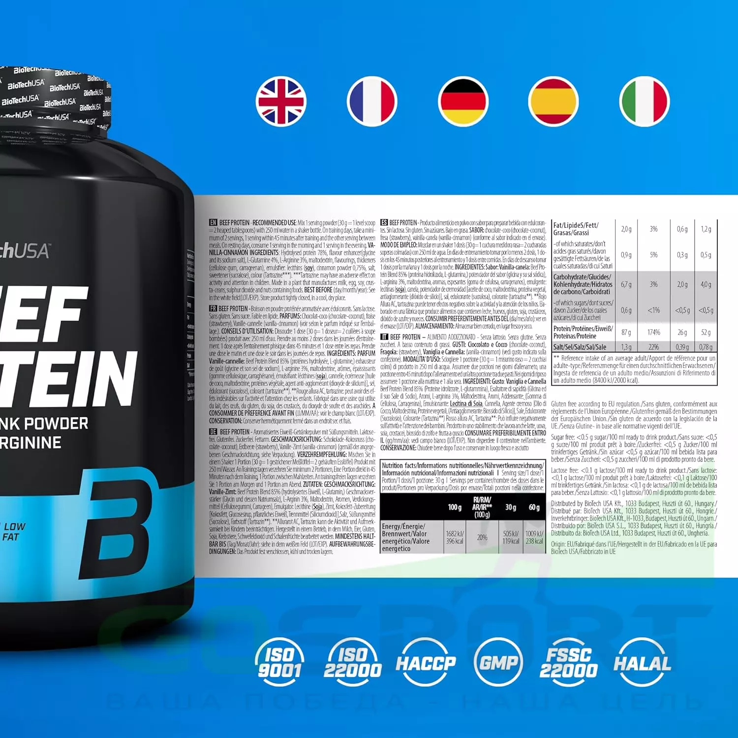 BioTech Beef Protein – спортивное питание с большим содержанием белка (85%) и отсутствием сахара. Представляет собой гидролизованный говяжий протеин в легкоусваиваемой форме.