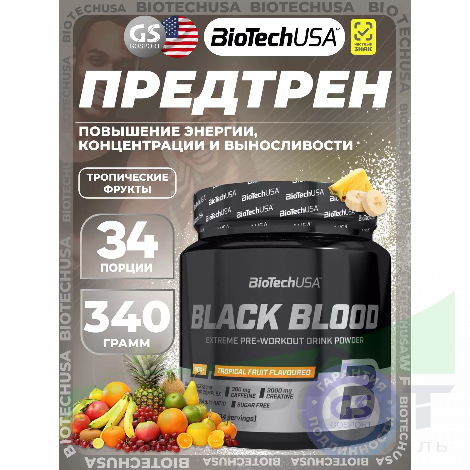 BioTechUSA Black blood Nox+ 340 г, Тропические фрукты — Повышение энергии, концентрации и выносливости