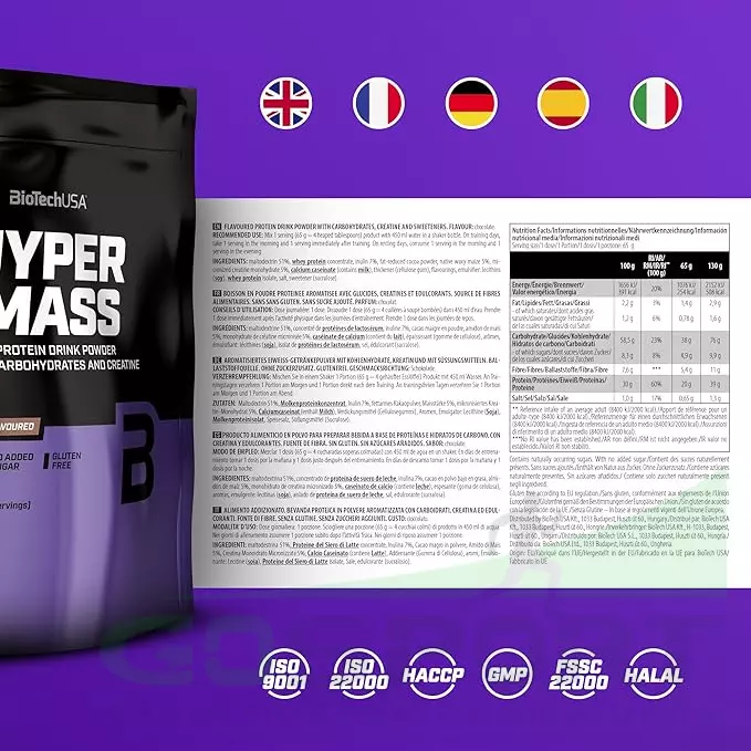 Высококалорийный гейнер Hyper Mass 5000 от BioTech USA восполнит потребности организма в белке, который способствует мышечному росту, а также обеспечит приток углеводов, поднимая уровень суточного потребления калорий. Разработан для тех, кому тяжело набирать массу. В каждой его порции также содержится 3250 мг креатина, который за счет воспроизводства АТФ увеличивает работоспособность организма.