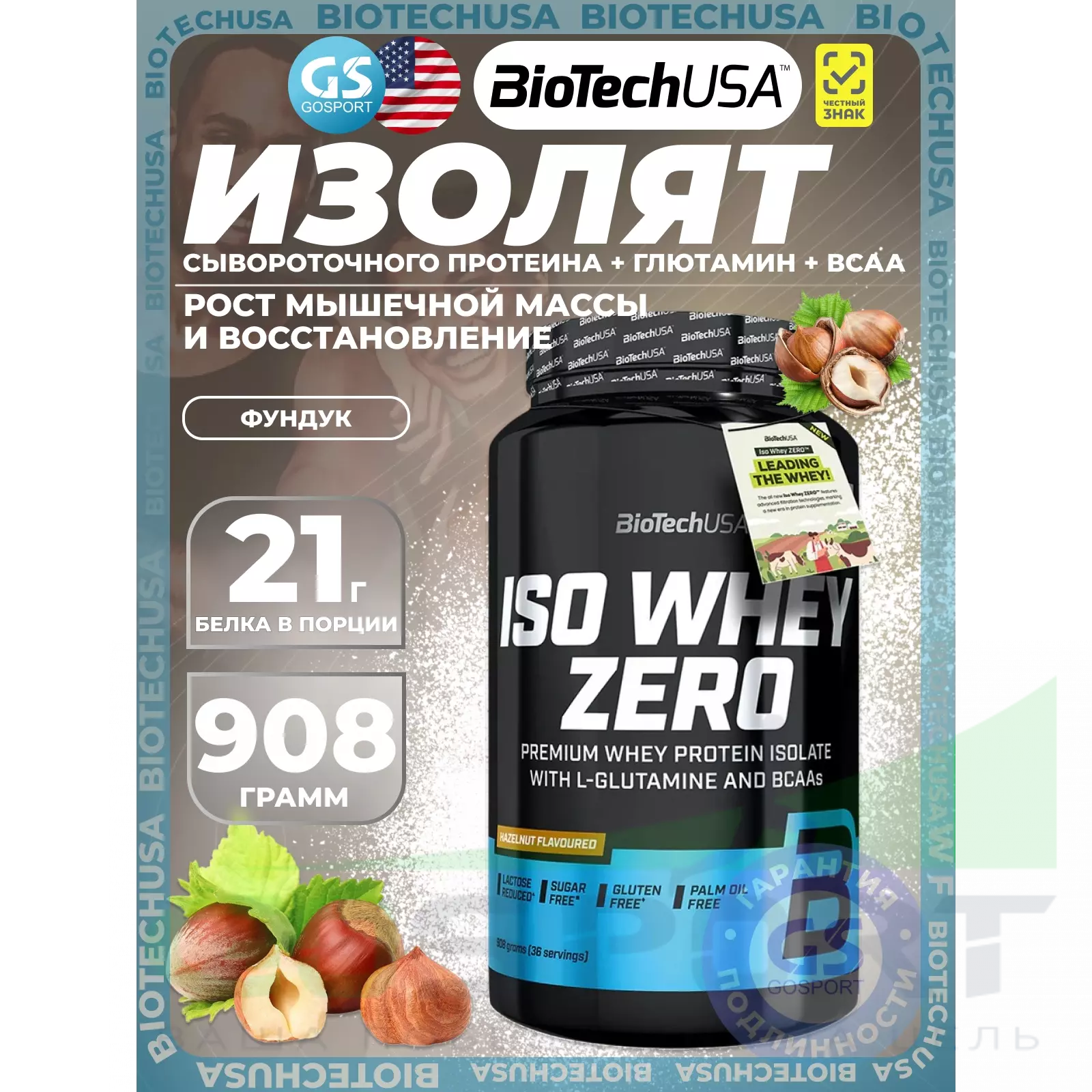 Высококачественный порошок из изолята сывороточного протеина, с пониженным содержанием лактозы, с добавлением аминокислот BCAA и глютамина.