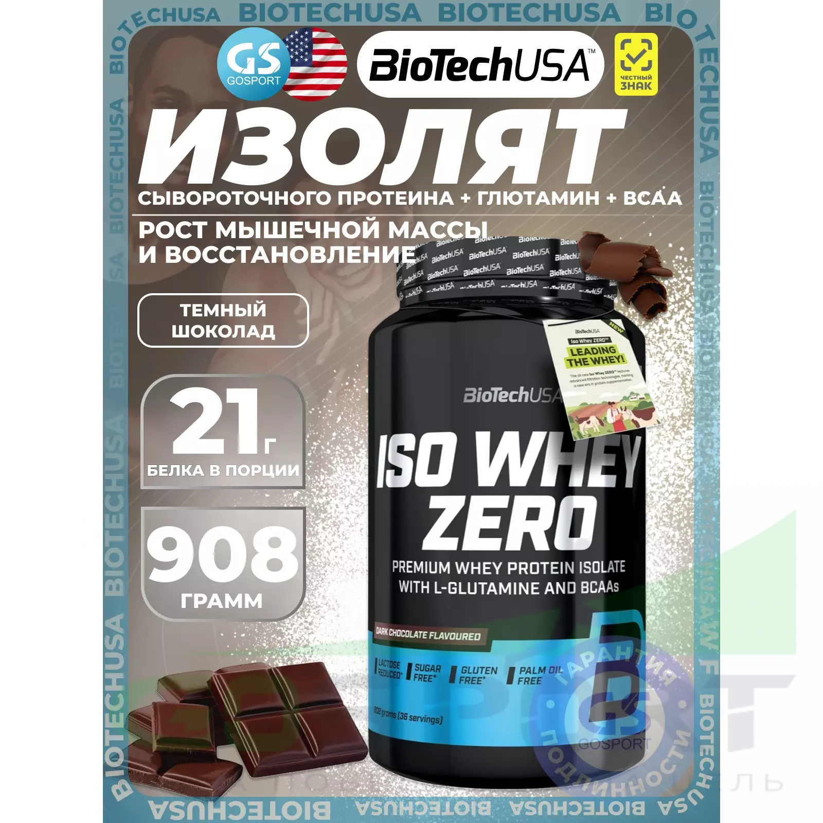 Высококачественный порошок из изолята сывороточного протеина, с пониженным содержанием лактозы, с добавлением аминокислот BCAA и глютамина.