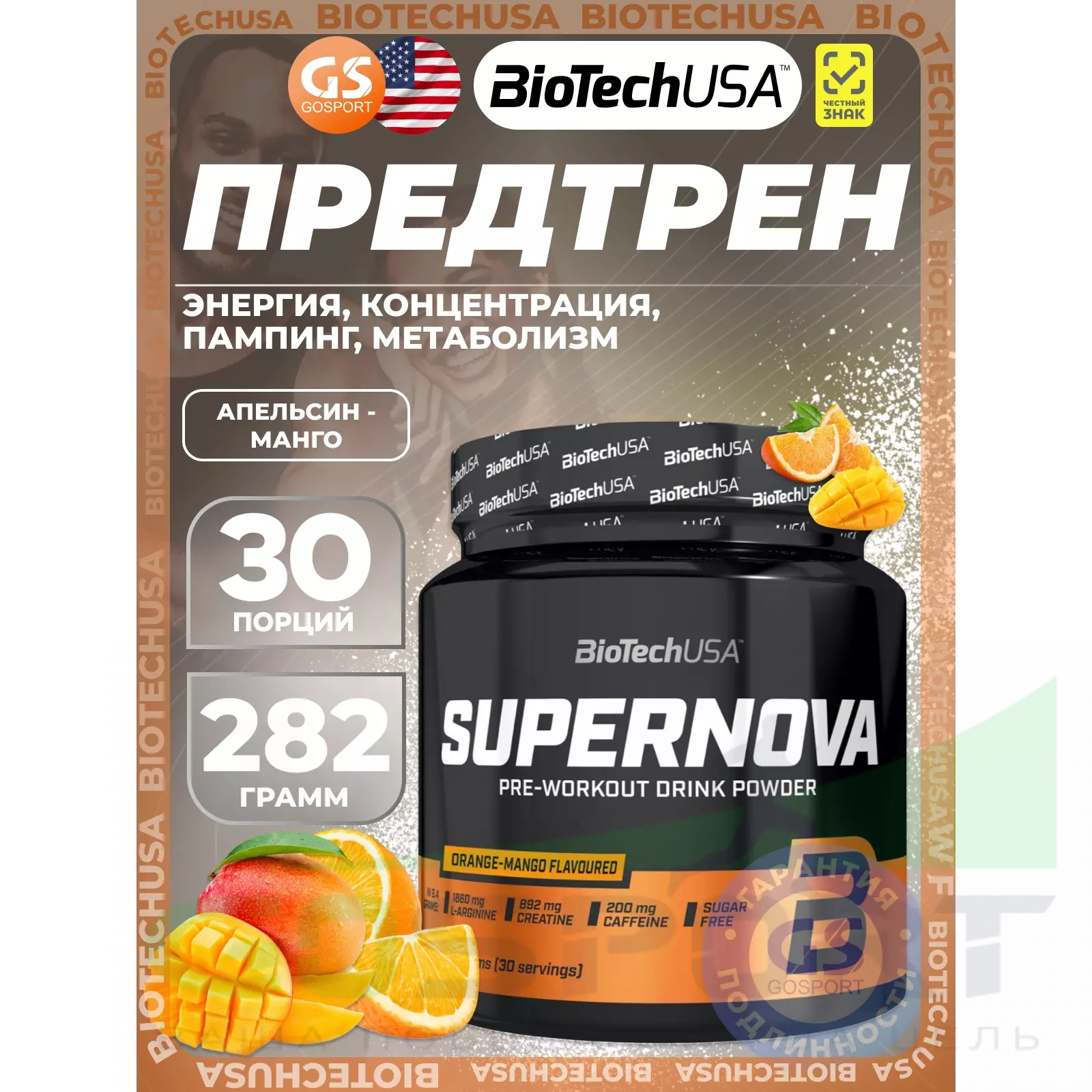 BioTechUSA Super Nova 282 г, Апельсин - манго — Энергия, концентрация, пампинг, метаболизм