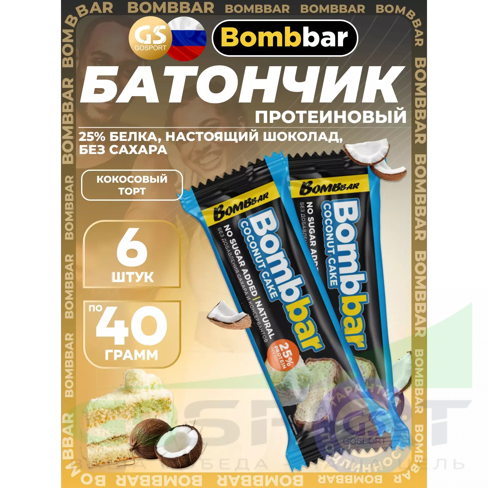 BombBar Батончики в шоколаде без сахара 6 x 40 г, Кокосовый торт — Полезный и питательный перекус