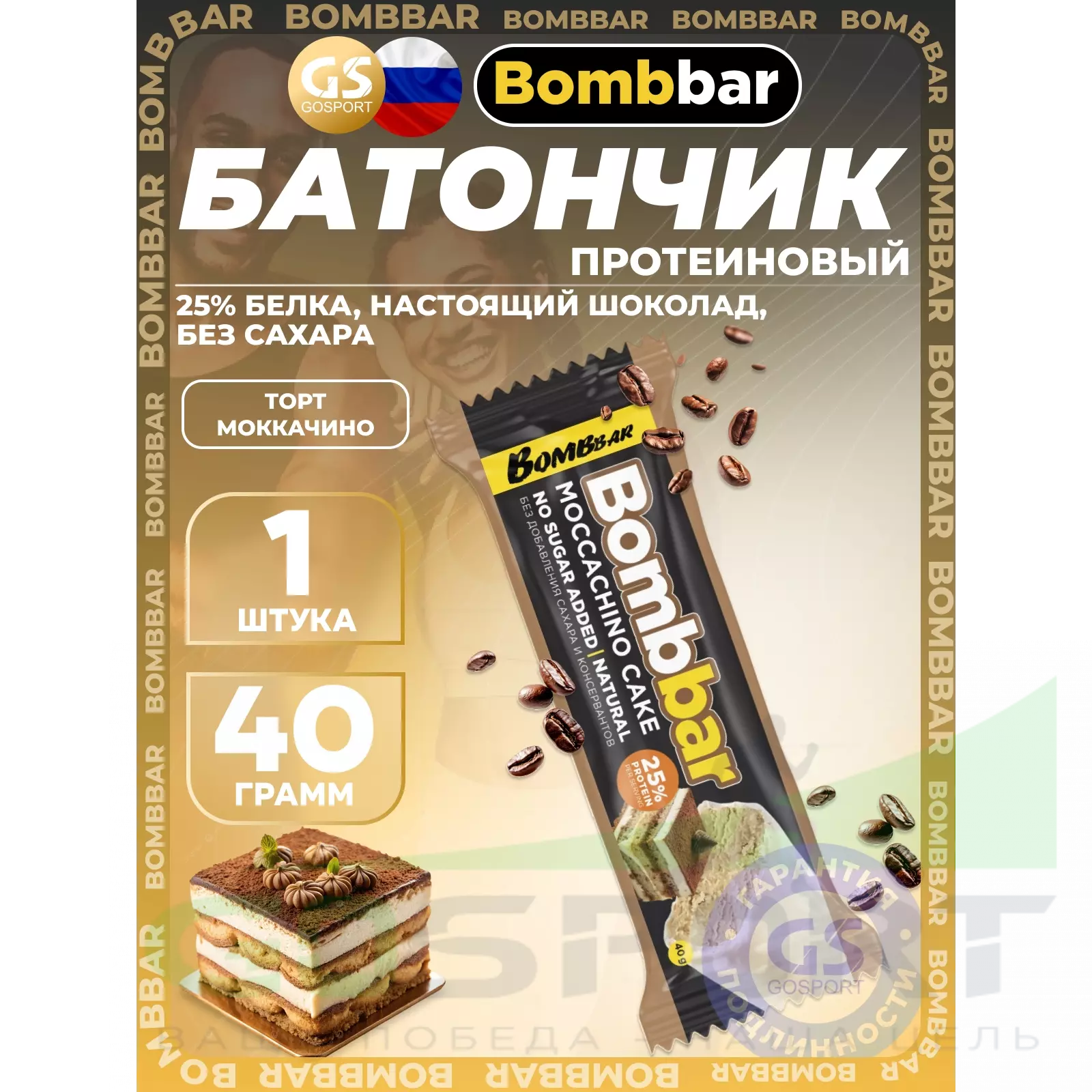 BombBar Батончик в шоколаде без сахара 40 г, Торт - Моккачино — Полезный и питательный перекус