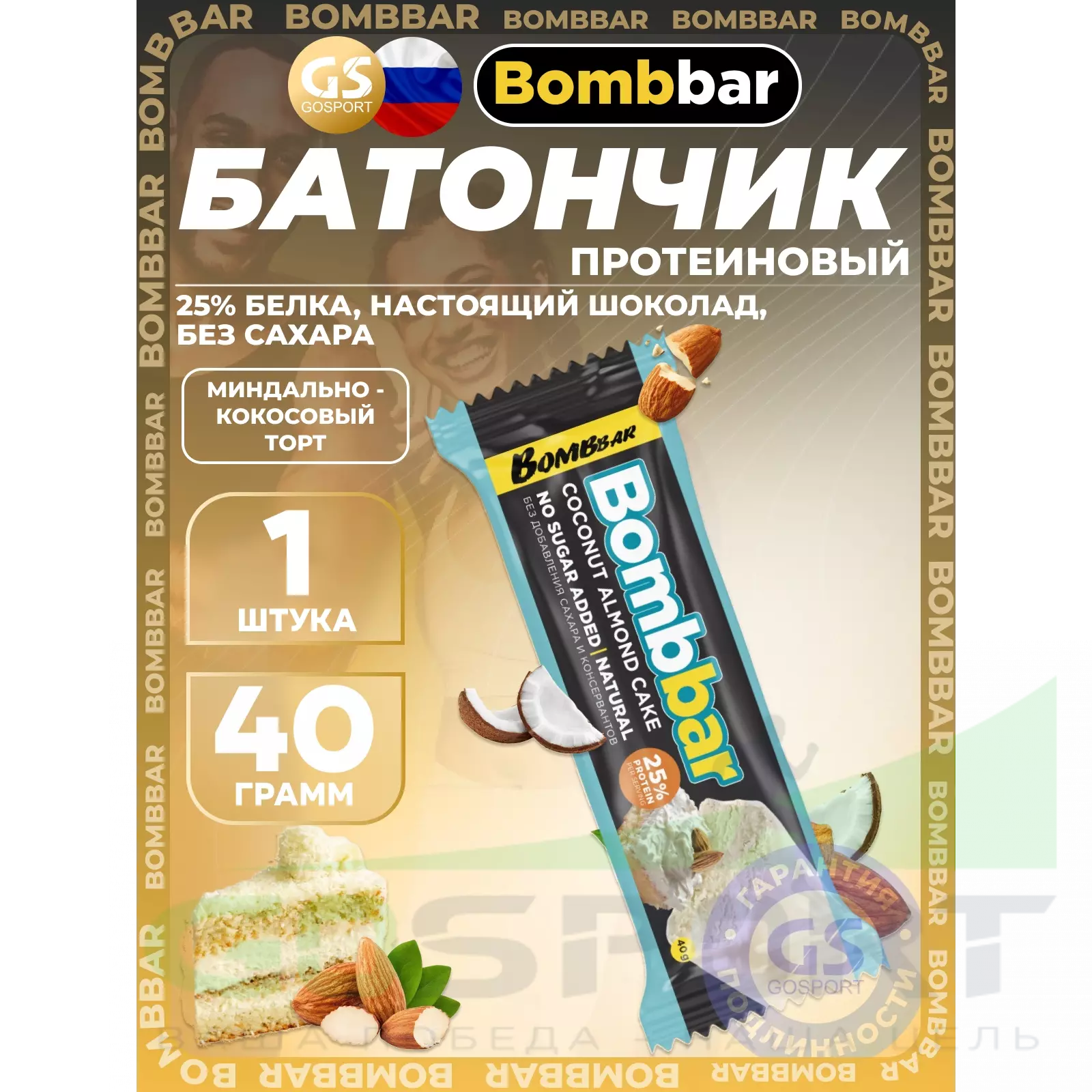 BombBar Батончик в шоколаде без сахара 40 г, Миндально-кокосовый торт — Полезный и питательный перекус
