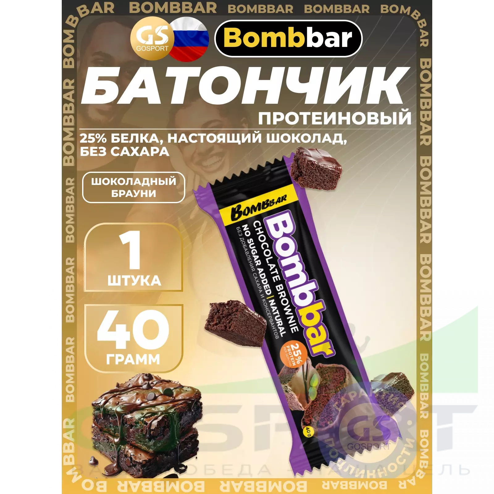 BombBar Батончик в шоколаде без сахара 40 г, Шоколадный брауни — Полезный и питательный перекус