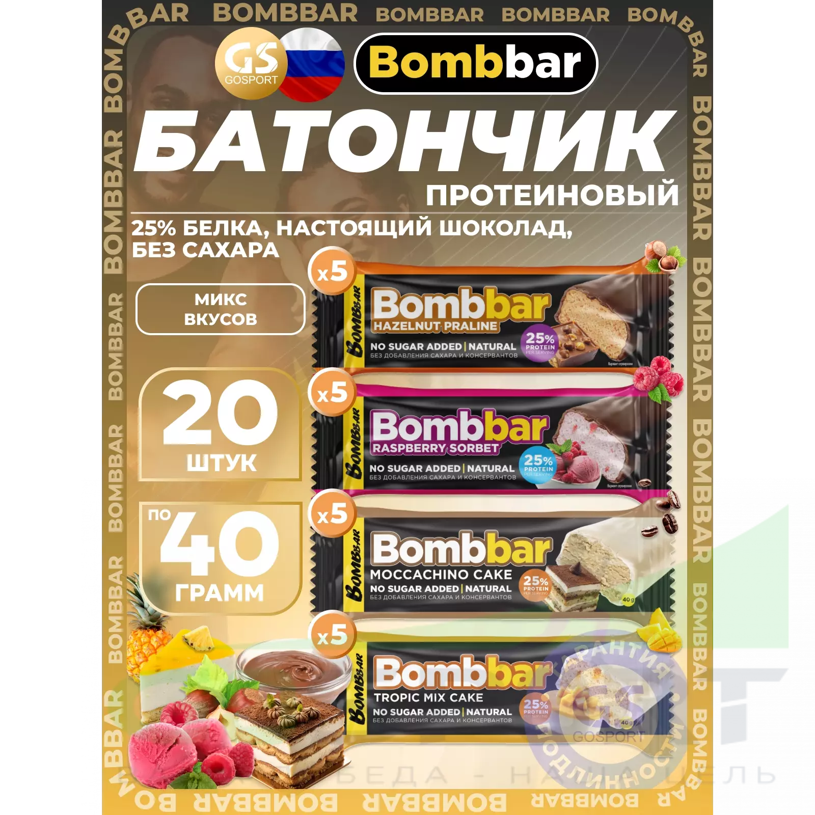 BombBar Батончик в шоколаде без сахара 20 x 40 г, Микс 4 — Полезный и питательный перекус