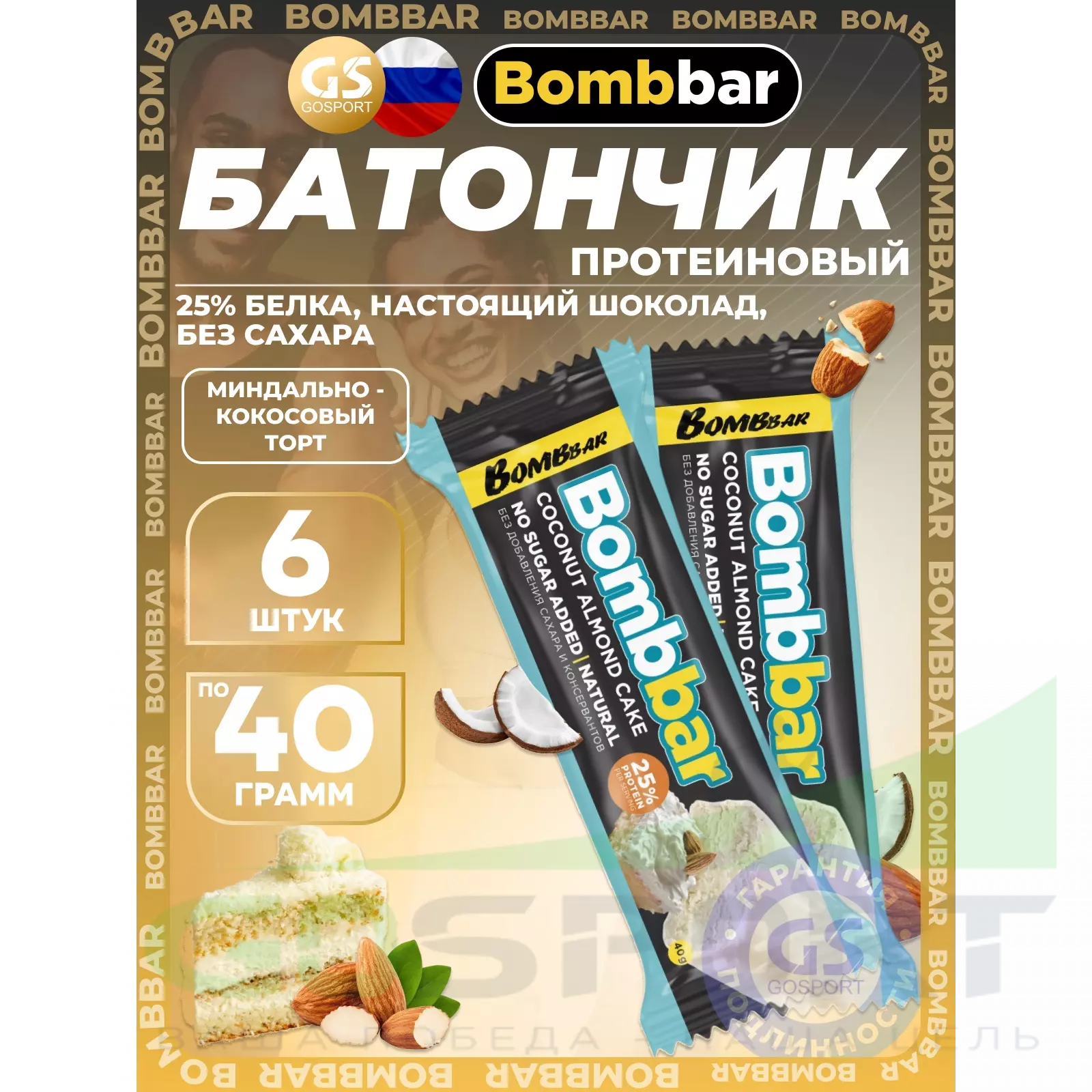 BombBar Батончик в шоколаде без сахара 6 x 40 г, Миндально-кокосовый торт — Полезный и питательный перекус
