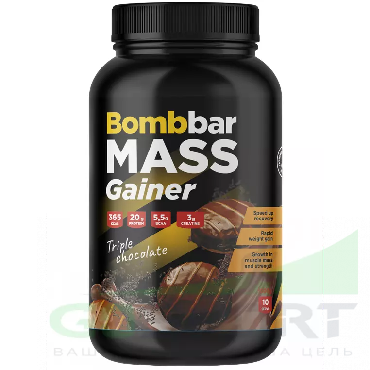 Bombbar Mass Gainer содержит целых 3 вида белка, что значительно повышает его эффективность, в сравнении с продуктами, где 1 вид белка или его нет совсем. В одной порции содержится 20 грамм белка (из них 5,5 грамм приходится на BCAA).