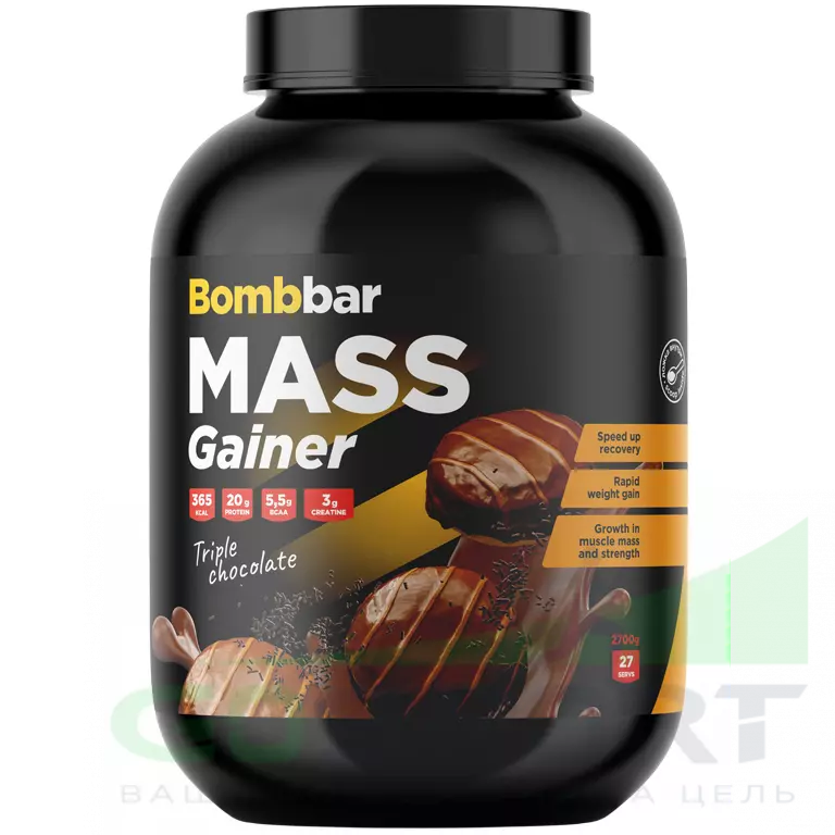 Bombbar Mass Gainer содержит целых 3 вида белка, что значительно повышает его эффективность, в сравнении с продуктами, где 1 вид белка или его нет совсем. В одной порции содержится 20 грамм белка (из них 5,5 грамм приходится на BCAA).