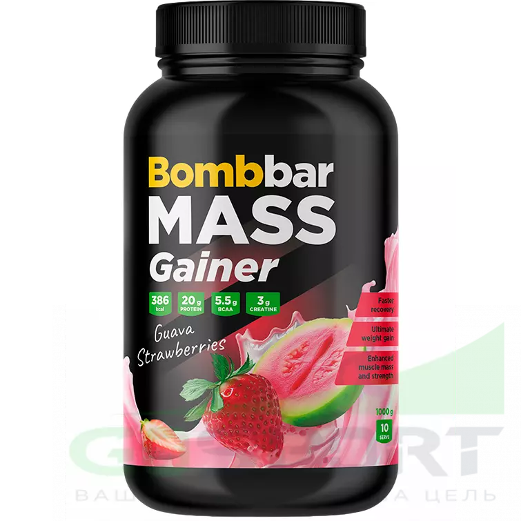 Bombbar Mass Gainer содержит целых 3 вида белка, что значительно повышает его эффективность, в сравнении с продуктами, где 1 вид белка или его нет совсем. В одной порции содержится 20 грамм белка (из них 5,5 грамм приходится на BCAA).