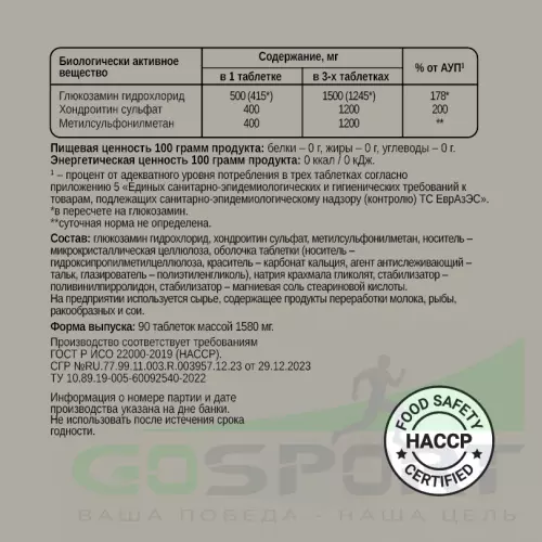 Глюкозамин и Хондроитин способствуют регенерации (восстановлению) поврежденной хрящевой ткани; оказывает противовоспалительное действие, облегчат боль и напряжение в суставах, увеличивает их подвижность, уменьшает отечность; участвует в формировании и улучшает трофику соединительной ткани суставных поверхностей, сухожилий, связок, синовиальной жидкости, кожи, костной ткани, ногтей, клапанов сердца, кровеносных сосудов и слизистой пищеварительных, дыхательных и мочевых трактов; оказывает благоприятное влияние на метаболизм хряща — усиление анаболических и ослабление катаболических процессов; стимулирует синтез коллагена; улучшает микроциркуляцию сосудистого русла периартрикулярных тканей; стимулирует синтез гиалуроновой кислоты, обеспечивающей смазку, необходимую для функционирования суставов; участвует в процессах минерализации кости, регулируя кальциевый баланс и благоприятствуя процессам окостенения.