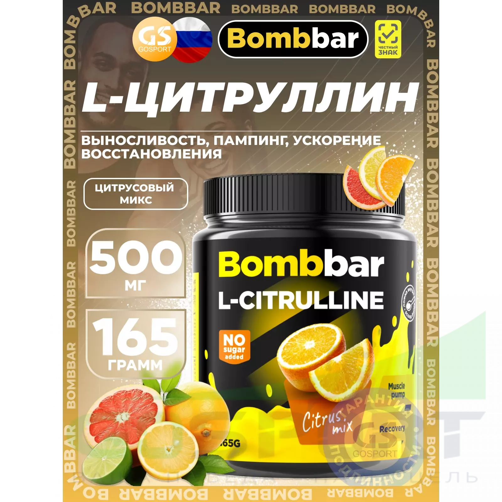 BombBar L-Сitrulline 500 mg 165 г, Цитрусовый микс — Выносливость, пампинг, ускорение восстановления