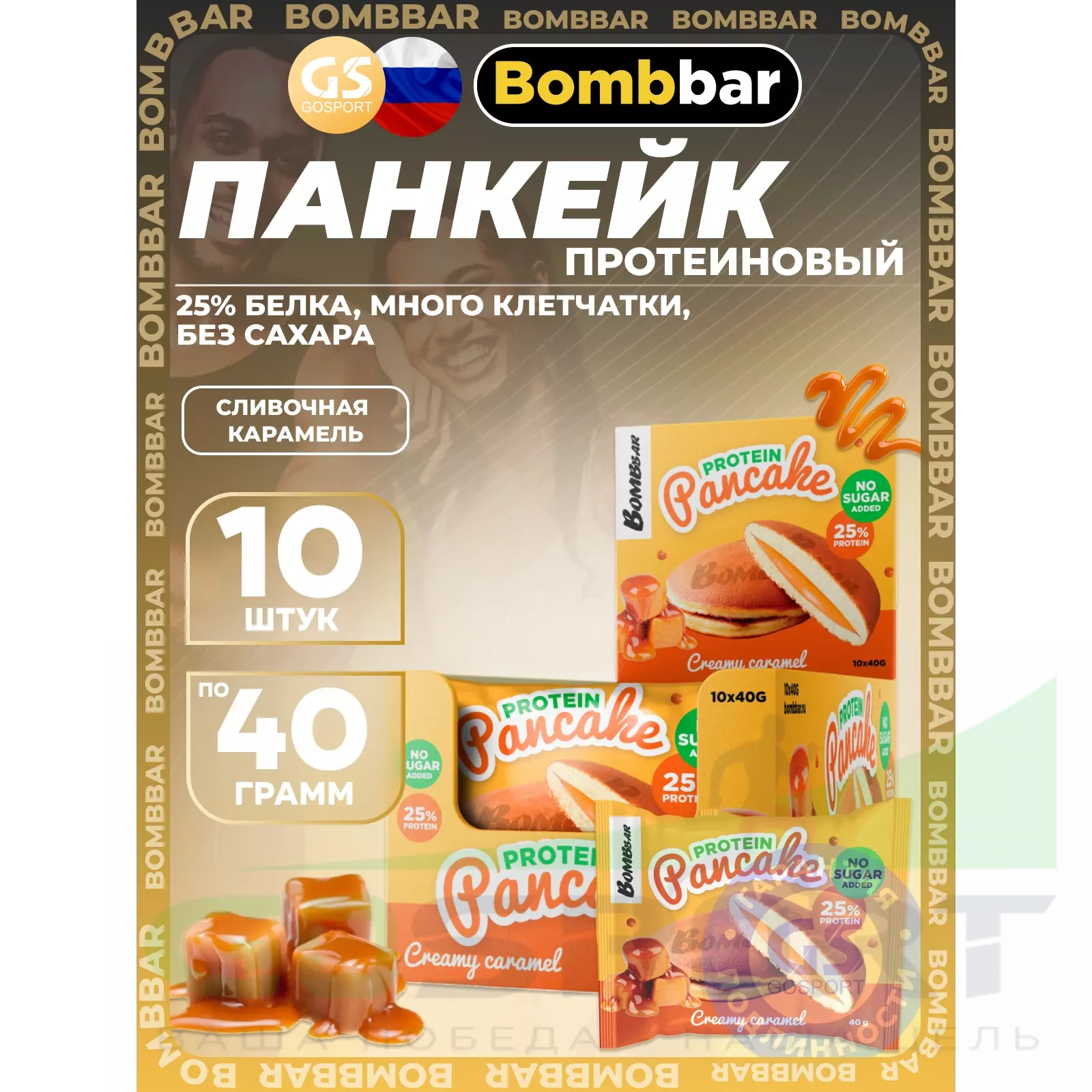BombBar Панкейк протеиновый 10 x 40 г, Сливочная карамель — Полезный и питательный перекус
