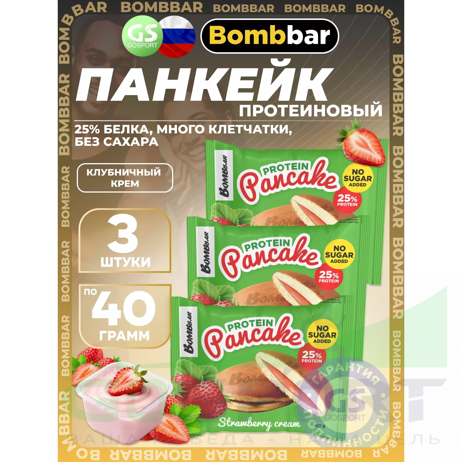 BombBar Панкейк протеиновый 3 х 40 г, Клубничный крем — Полезный и питательный перекус