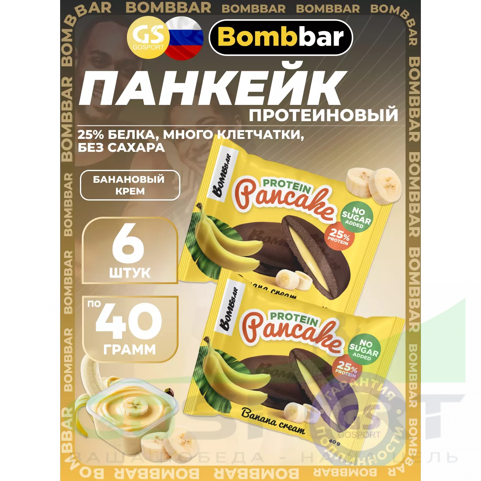 BombBar Панкейк протеиновый 6 x 40 г, Банановый крем — Полезный и питательный перекус
