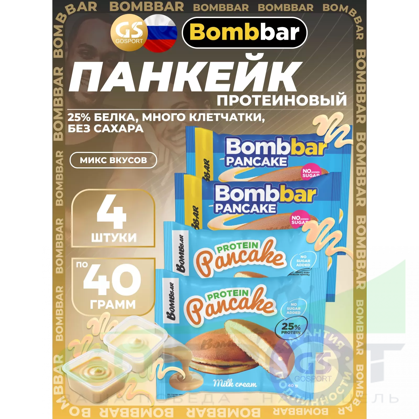BombBar Панкейк протеиновый 4 x 40 г, Микс 2 — Полезный и питательный перекус