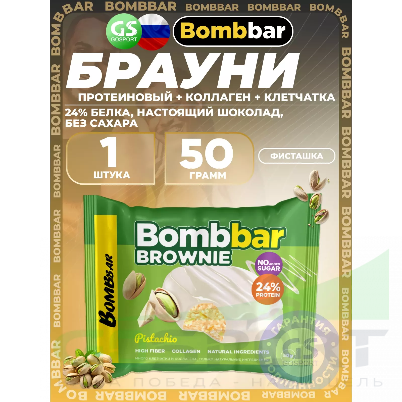 BombBar Печенье глазированное Brownie 50 г, Фисташка — Полезный перекус и поддержка мышц