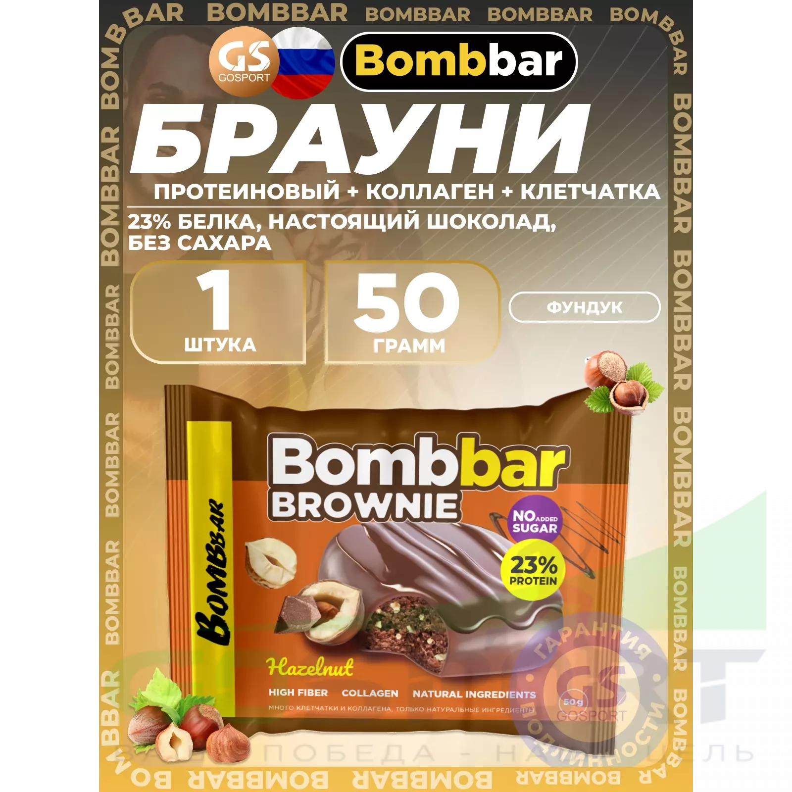 BombBar Печенье глазированное Brownie 50 г, Фундук — Полезный перекус и поддержка мышц