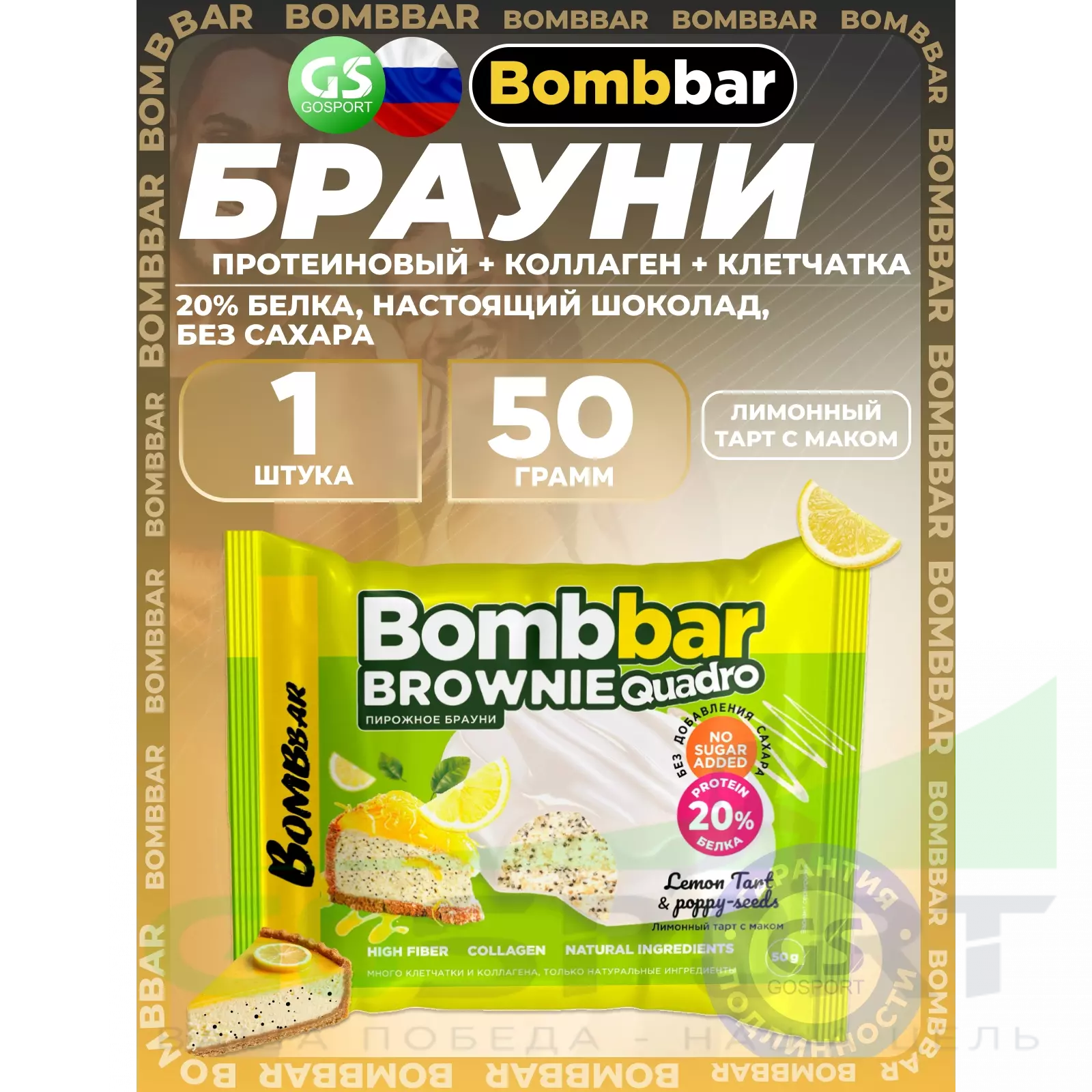 BombBar Печенье глазированное Brownie Quadro 50 г, Лимонный тарт с маком — Полезный перекус и поддержка мышц