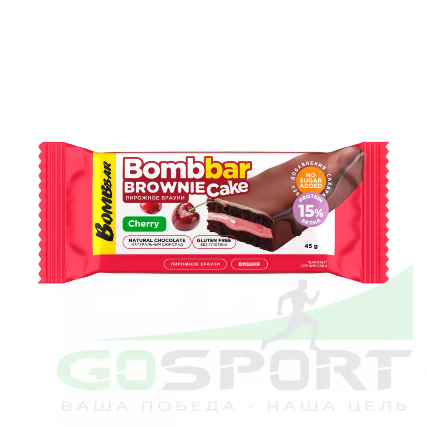 BombBar Пирожное протеиновое глазированное Брауни с начинкой 45 г, Вишня — Полезный перекус и поддержка мышц