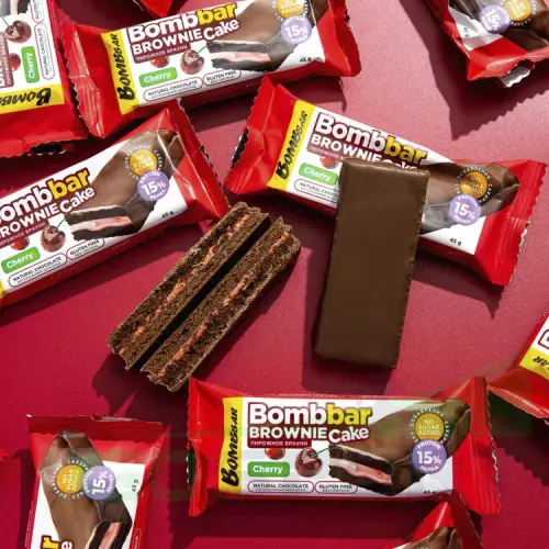 Протеиновые пирожные брауни Bombbar Brownie Cake - два слоя воздушного шоколадного бисквита с высоким содержанием протеина и нежной начинкой из натуральных ингредиентов!