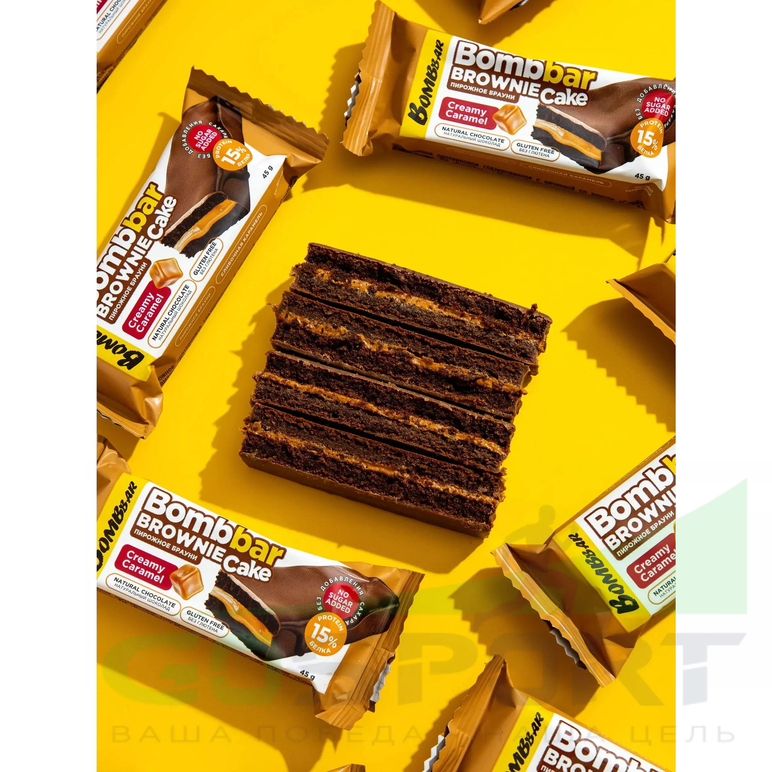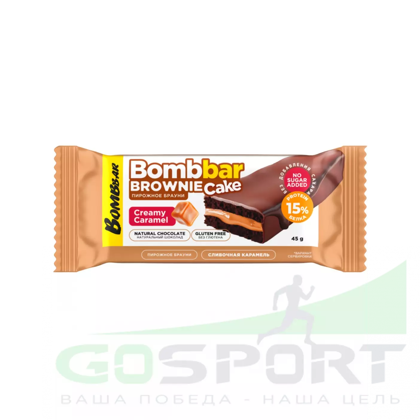 BombBar Пирожное протеиновое глазированное Брауни с начинкой 45 г, Сливочная карамель — Полезный перекус и поддержка мышц