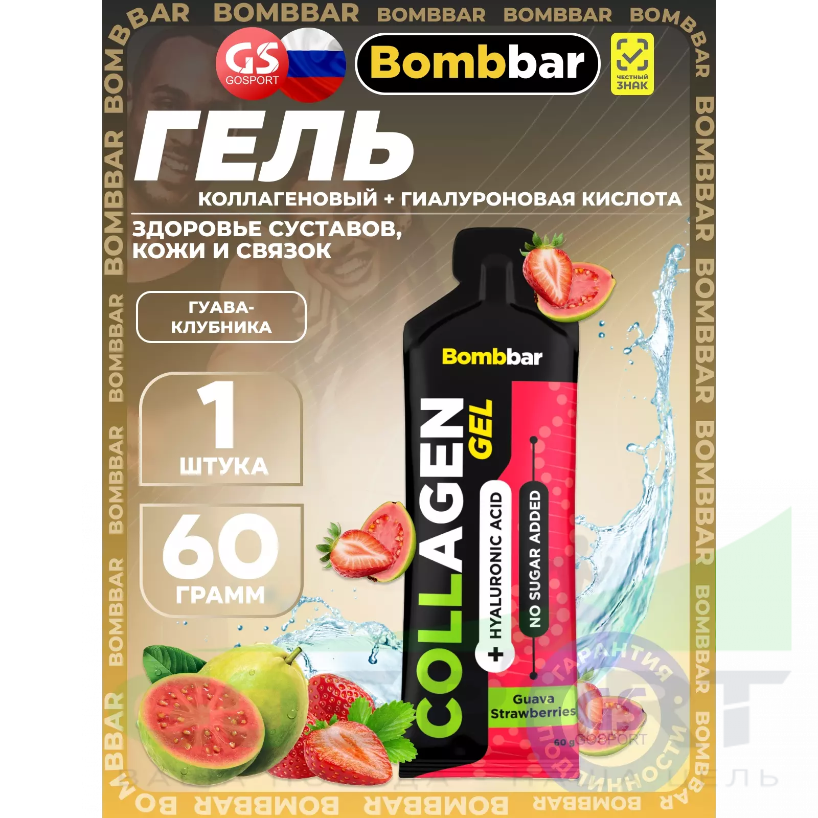 BombBar Collagen gel + hyaluronic acid 60 г, Гуава-Клубника — Здоровье суставов, кожи и связок