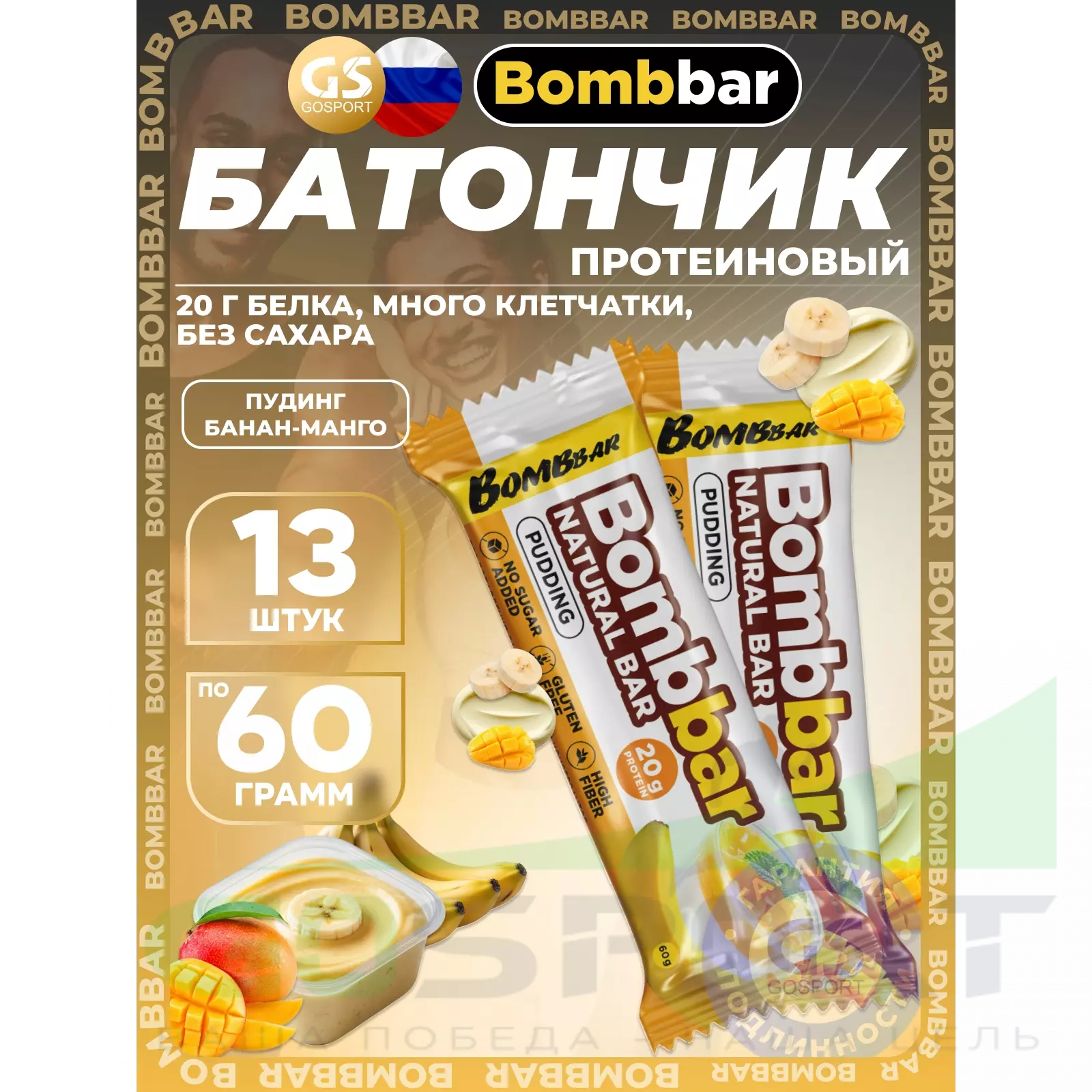 BombBar Protein Bar 13 x 60 г, Пудинг Банан-Манго — Полезный перекус и поддержка мышц