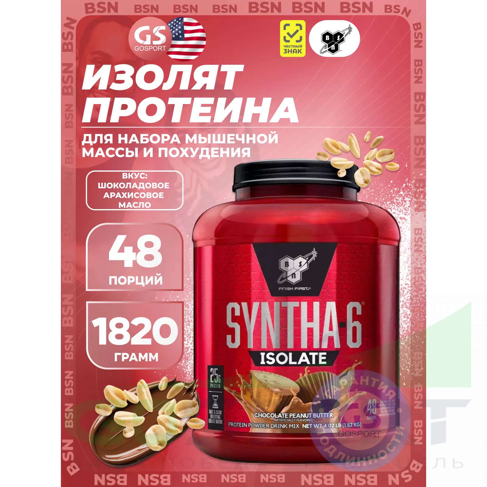 BSN SYNTHA-6 ISOLATE 1820 г / 4.02 LB, Шоколадно - арахисовое масло — Для набора мышечной массы и похудения