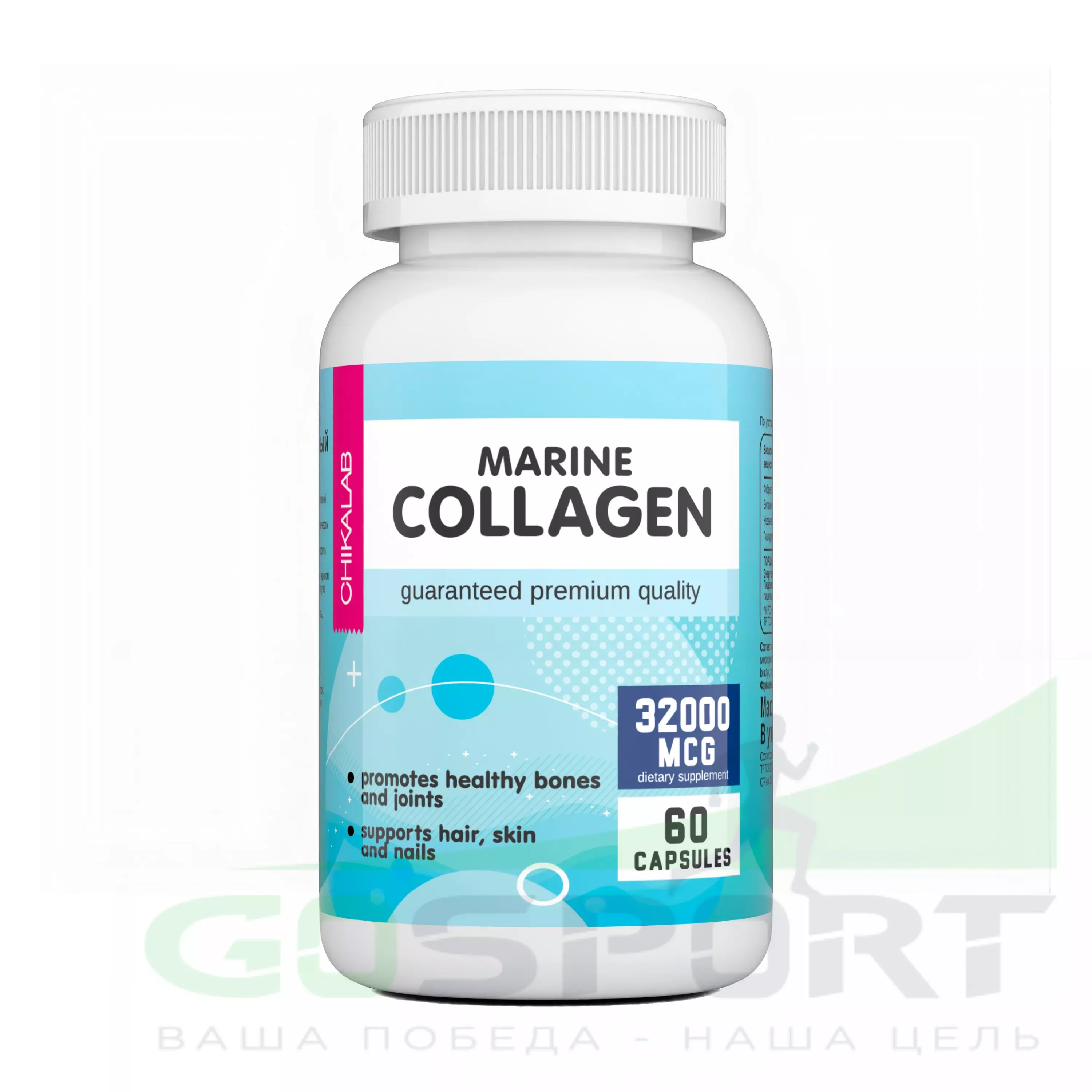 Chikalab Marine collagen 32 mg 60 капсул — Укрепление костей и суставов, поддержка волос, кожи и ногтей